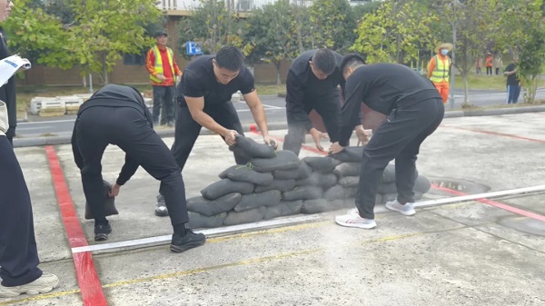 在“搬运沙袋”环节, ,,,,,,,队员们肩扛手提, ,,,,,,,动作迅捷有力, ,,,,,,,沙袋在他们手中快速传递、整齐堆叠, ,,,,,,,展现出应对汛情险情的实战能力;;;;; ;;“抢救伤员”项目中, ,,,,,,,参赛选手迅速整理救护装备, ,,,,,,,小心翼翼将“伤员”固定于担架, ,,,,,,,步伐稳健、配合默契, ,,,,,,,体现了应急救援中的人文关怀;;;;; ;;“水带连接”环节, ,,,,,,,水带在空中划出流畅弧线, ,,,,,,,接口精准对接, ,,,,,,,动作一气呵成;;;;; ;;而在“灭火比赛”中, ,,,,,,,选手们熟练操作灭火器, ,,,,,,,精准扑灭火源, ,,,,,,,展现了扎实的消防基本功。。。。。。。最终桂林航空、鼎捷资产公司、机场路/阳桂公司分获大赛的一、二、三名。。。。。。。